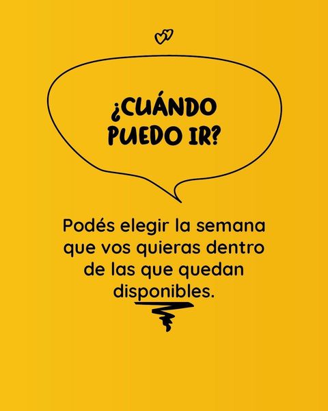Consultanos por whatspp las semanas disponibles. Podes reservar tu semana con una seña de $50.000 y el resto lo abonas al llegar.
